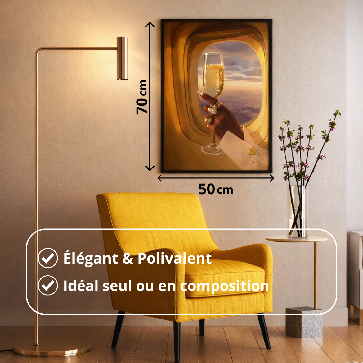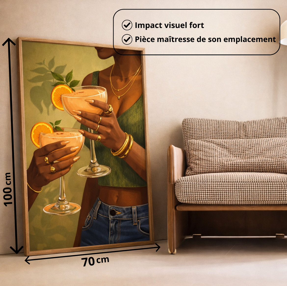 Si vous sélectionnez l'option "Avec Cadre", nous assemblons soigneusement l'œuvre dans son cadre. Il arrive prêt à être accroché à votre mur dès réception.